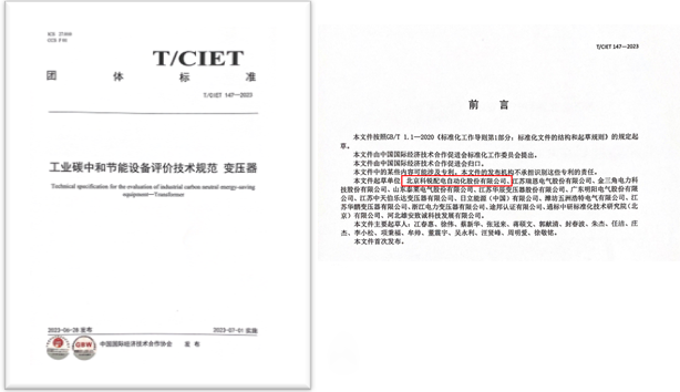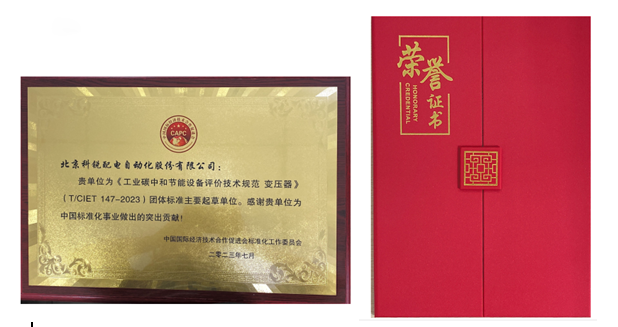 近日,由中国国际经济技术合作促进会(以下简称:国促会)组织制定的T/CIET 147-2023《工业碳中和节能设备评价技术规范变压器》团体标准发布,在此标准制定工作中,北京科锐配电自动化股份有限公司(简称“北京科锐”)作为主笔单位,获得了由国促会标准化工作委员会颁发的铜牌及荣誉证书。